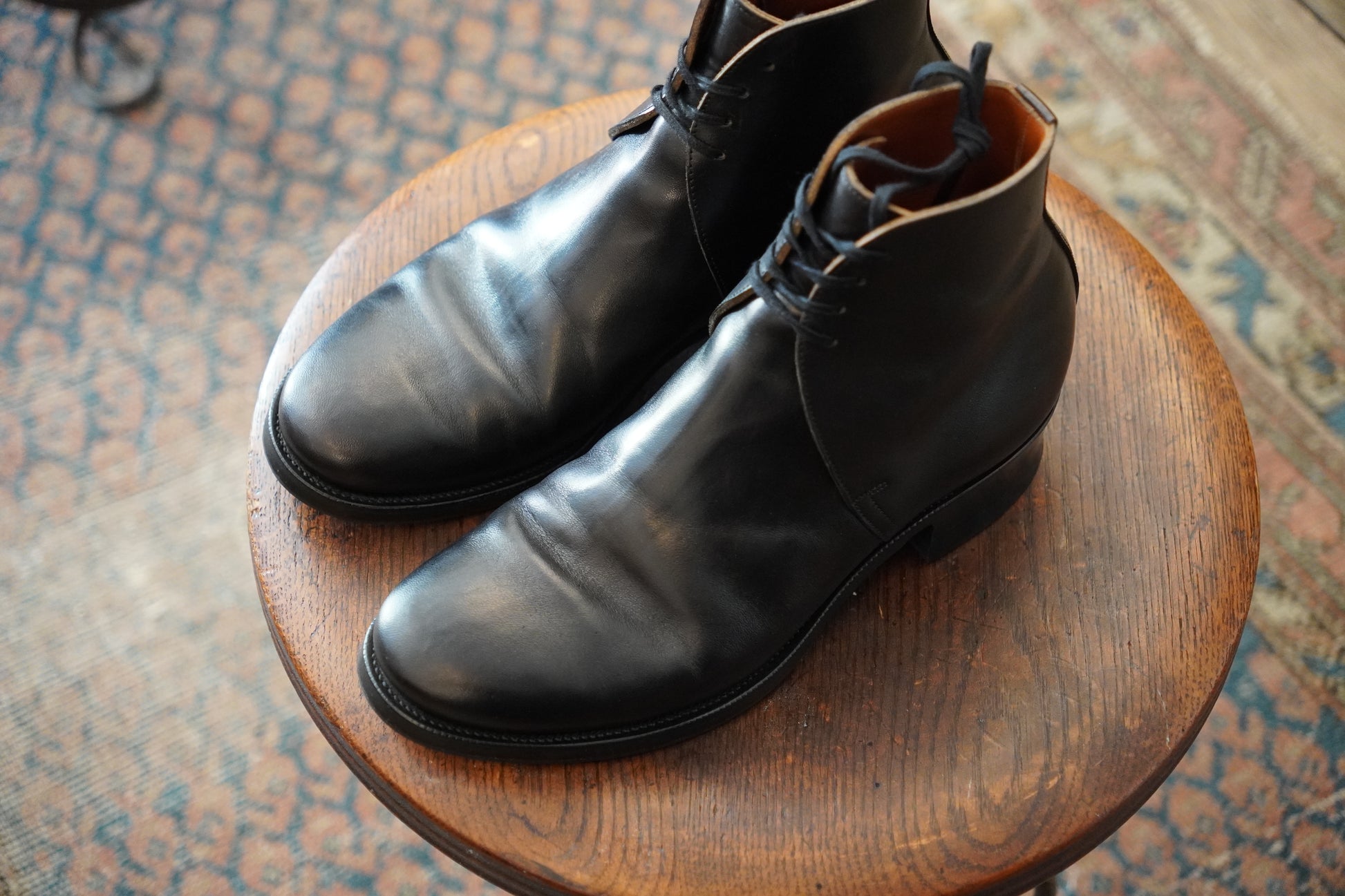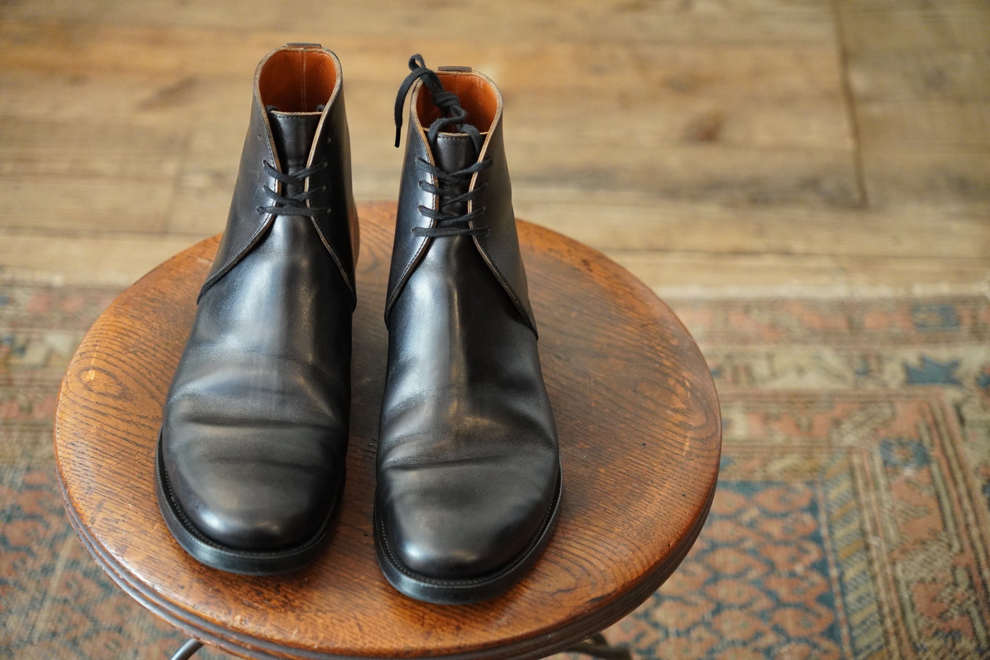 もともとはイギリス靴の名作、ジョージブーツを由来としています。ジョージブーツはもともとジョージ6世がパンツの裾から紐が見えるのが好ましくないと理由に作られた事とされています。